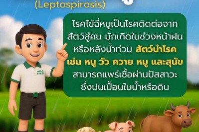 หน้าฝน ระวัง! โรคไข้ฉี่หนู โรคติดต่อจากสัตว์สู่คน เกิดจากปัสสาวะของหนู วัว ควาย หมู หรือสุนัข ที่ปนเปื้อนในน้ำหรือดิน พบมากหลังฝนตก น้ำท่วม หรือทำงานในพื้นที่ชื้นแฉะ