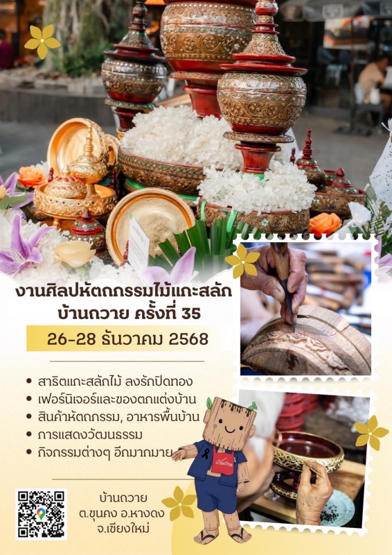 ขอประชาสัมพันธ์และเชิญชวน เที่ยวงานศิลปหัตถกรรมไม้แกะสลักบ้านถวาย ครั้งที่35 ระหว่างวันที่ 26 - 28 ธันวาคม 2568 พบกับกิจกรรมภายในงาน