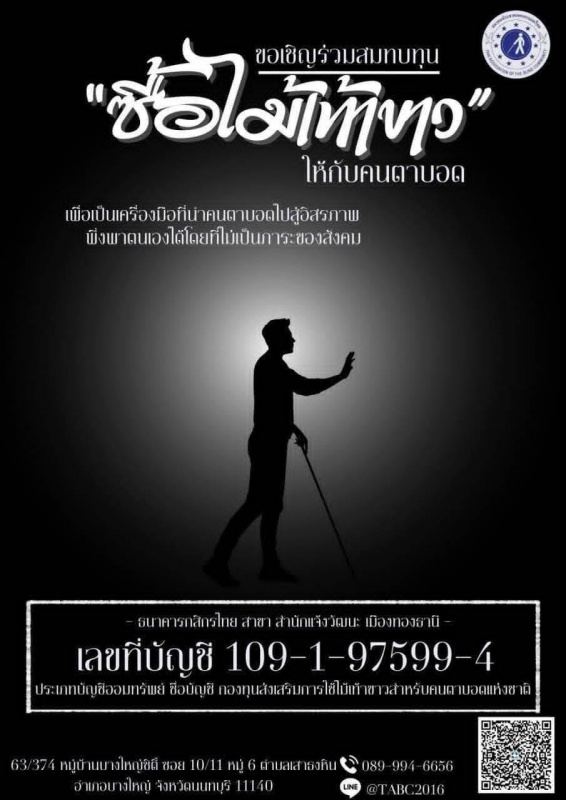 ประชาสัมพันธ์ร่วมบริจาคสมทบทุนซื้อไม้เท้าขาวให้คนพิการทางการมองเห็น