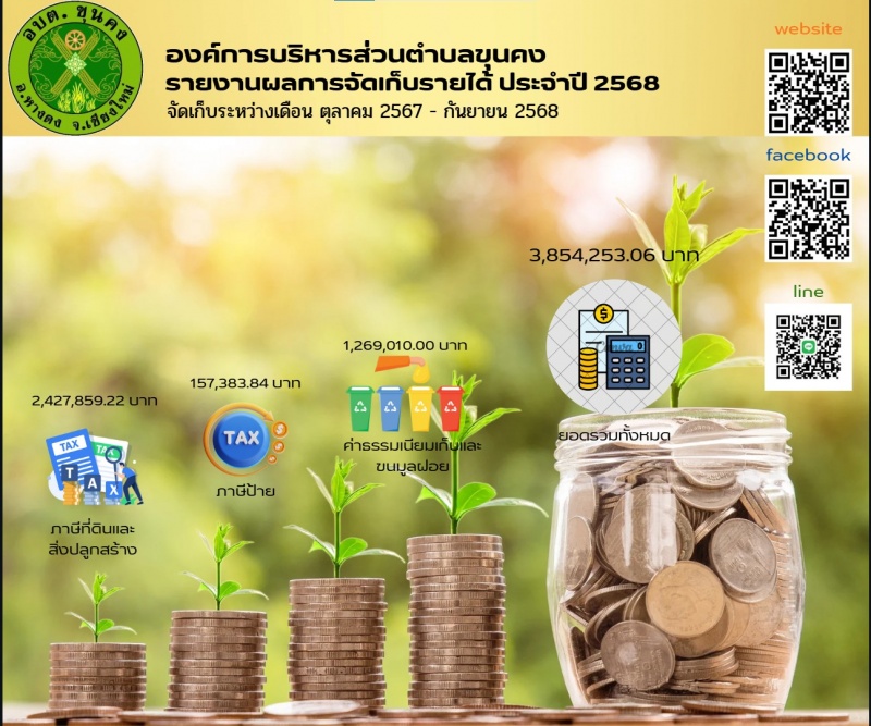 รายงานผลการจัดเก็บรายได้ ปีงบประมาณ พ.ศ.2568 จัดเก็บระหว่างเดือน ตุลาคม 2567 - กันยายน 2568