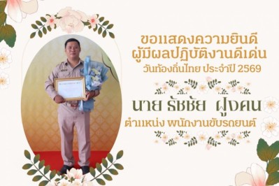 ขอแสดงความยินดีกับผู้ได้รับคัดเลือกเป็นพนักงานดีเด่น เนื่องในวันท้องถิ่นไทย ประจำปี 2569