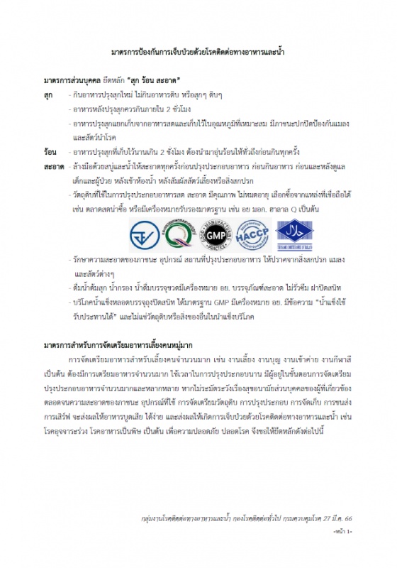 การแนะนำมาตรการป้องกันการเจ็บป่วยด้วยโรคติดต่อทางอาหารและน้ำ